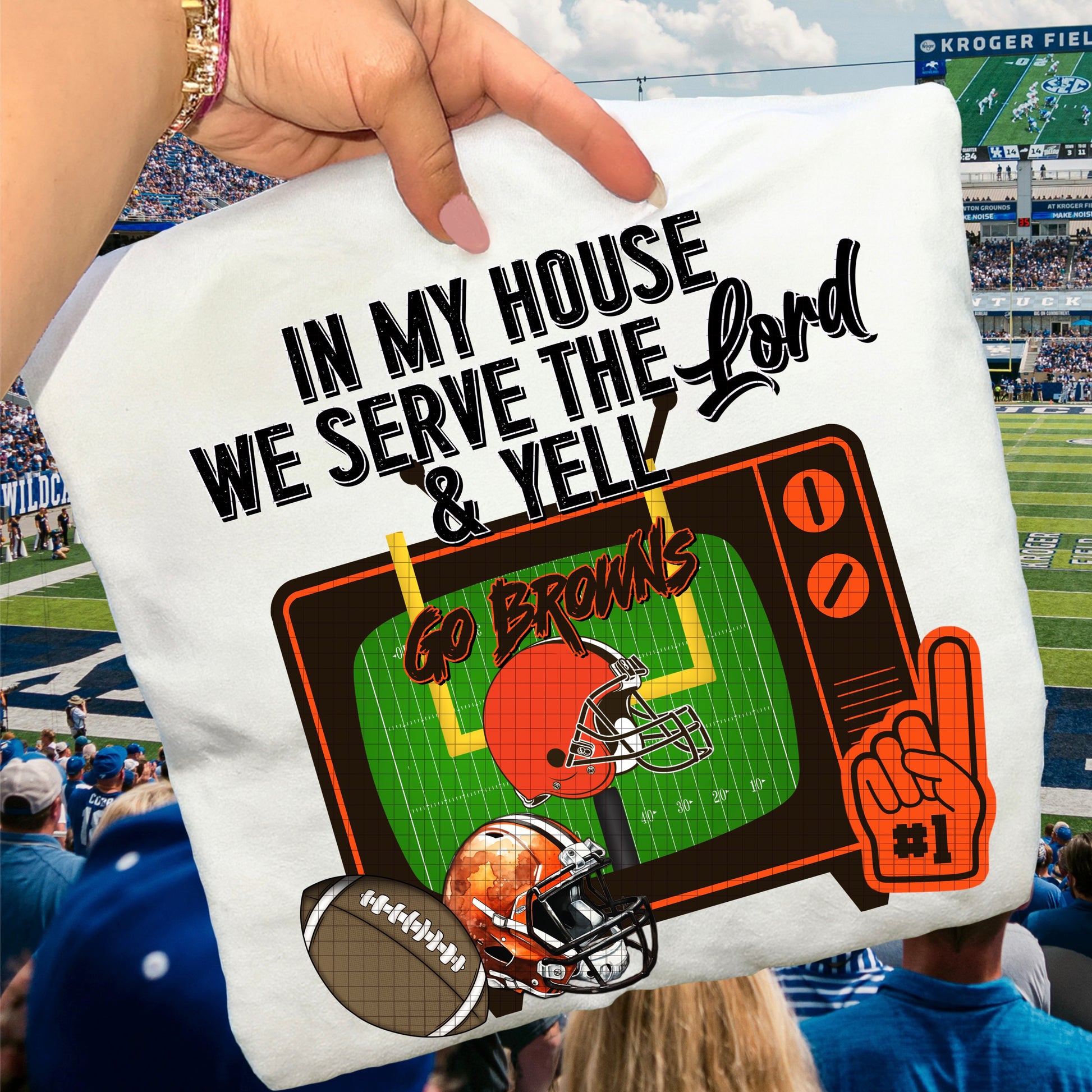 In My House We Serve the Lord and Yell Go Pro Football Teams (Choose Yours) 07639